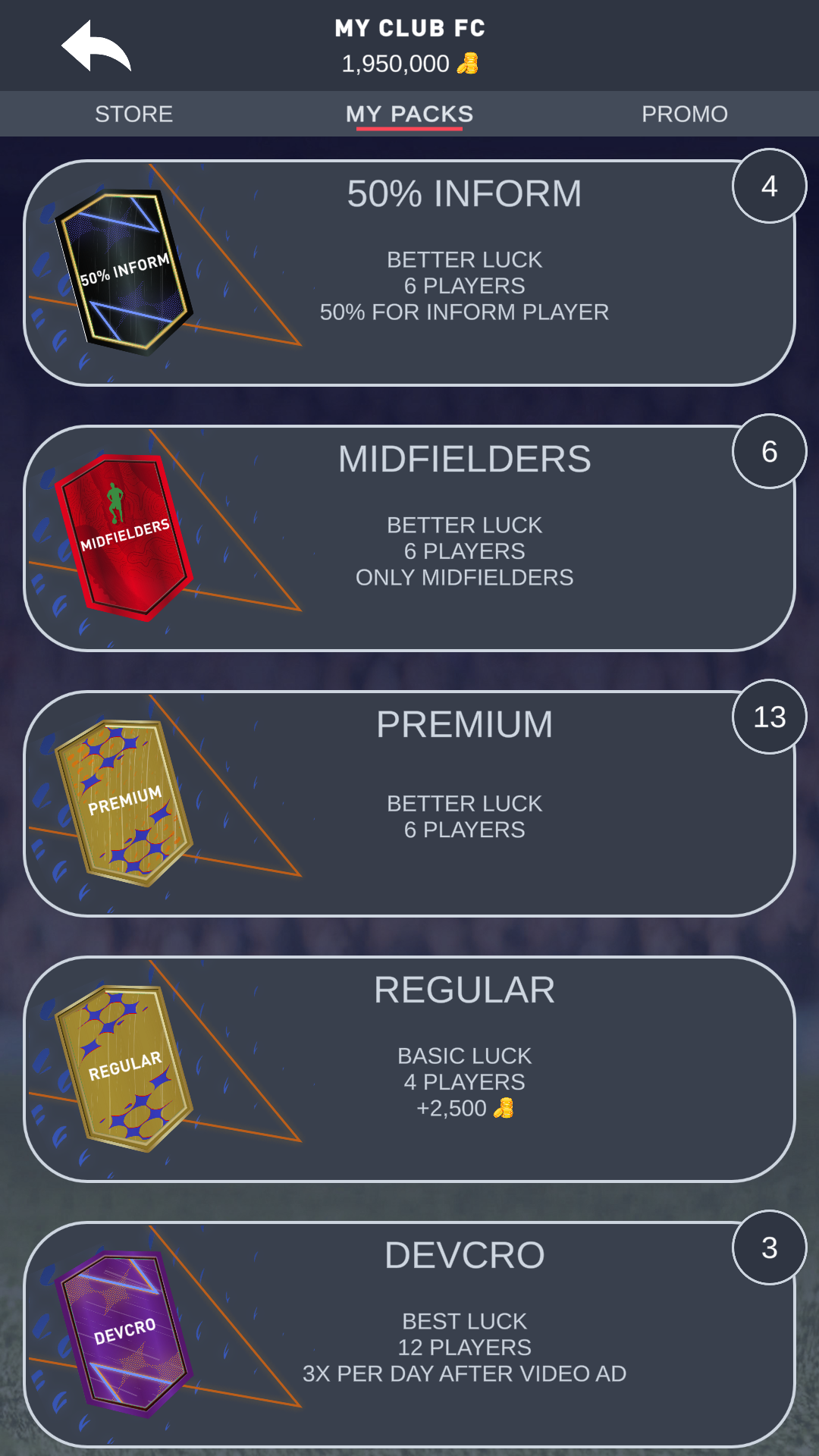 The game encompasses an array of exciting features such as Draft, Packs, Squads, Matches, and the Transfer Market among others!