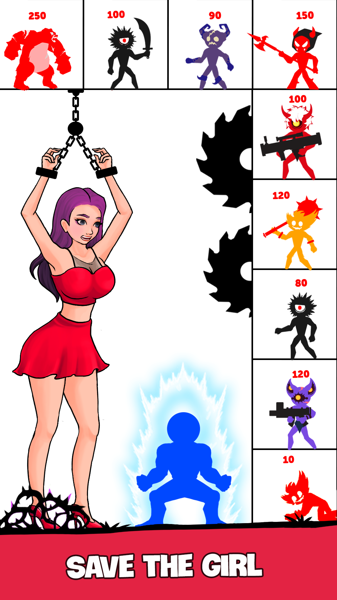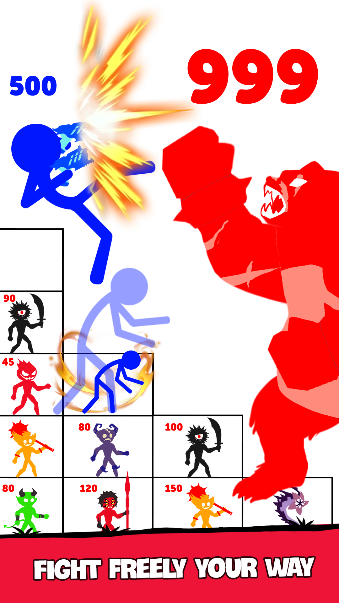 This is a role-playing game intertwined with Puzzle elements where players command a powerful stick hero tasked with repelling numerous foes and safeguarding your tower.