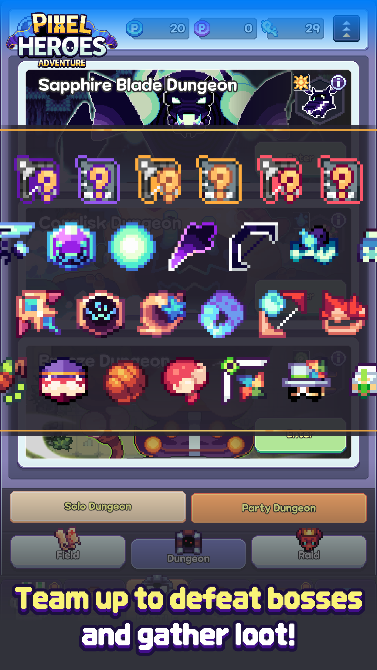 Join us in "Pixel Heroes Adventure," where you can enjoy endless opportunities for growth and adventure amidst stunning pixel graphics and a diverse assortment of collectable items!